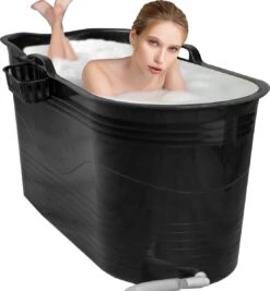 LIFEBATH – Zitbad Mira – Bath Bucket XL – Inclusief Hoofdkussen – 400L – Ligbad 122 Cm – Zwart