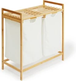 Merkloos 2x Witte Badkamer/keuken Bekers Met Bamboe 11 Cm- 300 Ml – Badkameraccessoires – Drinkbeker