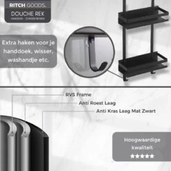 Merkloos GDRN – Doucherek Zwart – Zonder Boren – Doucherekjes – Hangend – Zwart – RVS