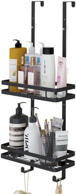 Luxe Doucherek Zonder Boren – 1/2/3 Laags – 32 Cm – Hangend – Aluminium – Zwart