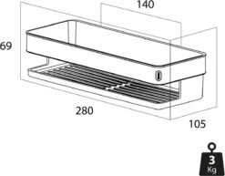RVS Doucherek Zelfklevend Zonder Boren – Douchemand Hangend – 15KG Draagvermogen – Zilver/Chroom
