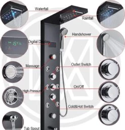 SCHÜTTE Niagara Handdouche – Douchekop Ø 15 Cm – 5 Standen – Watervaluitloop – Waterstop – Chroom