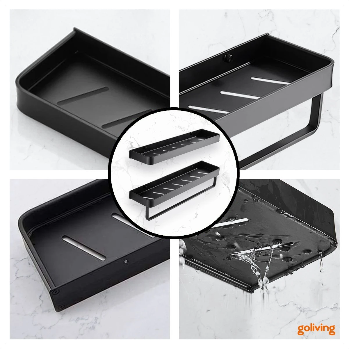 Het doucherek bestaat uit 2 verschillende lagen die beide 40 cm breed zijn. Op het rek kun je verschillende flessen, zeepjes, scheermesjes, tandenborstel en andere spulletje kwijt. Het onderste rekje is daarnaast voorzien van een extra stang waar je een handdoek aan op kunt hangen.