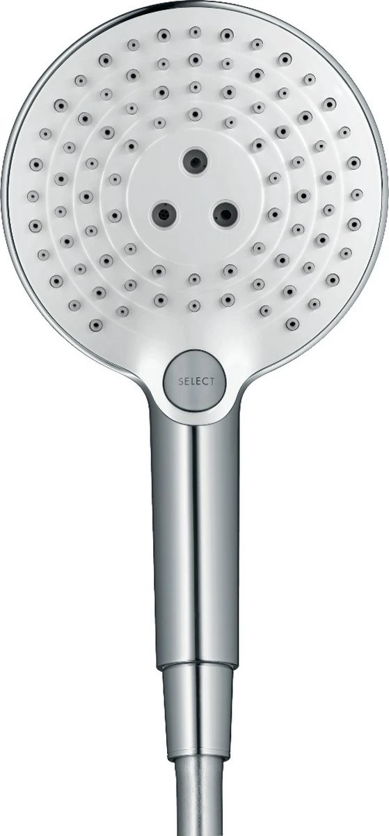 Met de Raindance Select S 120 douchekop van hansgrohe worden modern design en afwisselend doucheplezier gecombineerd. De handdouche met een diameter van 12,5 cm verwent met drie op elkaar afgestemde straalsoorten. De RainAir-straal zorgt voor het originele regendouchegevoel van hansgrohe. Hier wordt water verrijkt met lucht (AirPower). Dat zorgt voor vollere en zijdezachte druppels die de volledige warmte van het water aan de huid afgeven en minder spatten. De weldadige Rain-straal, ideaal om shampoo uit te spoelen, en de Whirl-straal om vastzittende spieren los te maken. wisselen van straalsoort kan heel eenvoudig met één druk op de knop (Select).