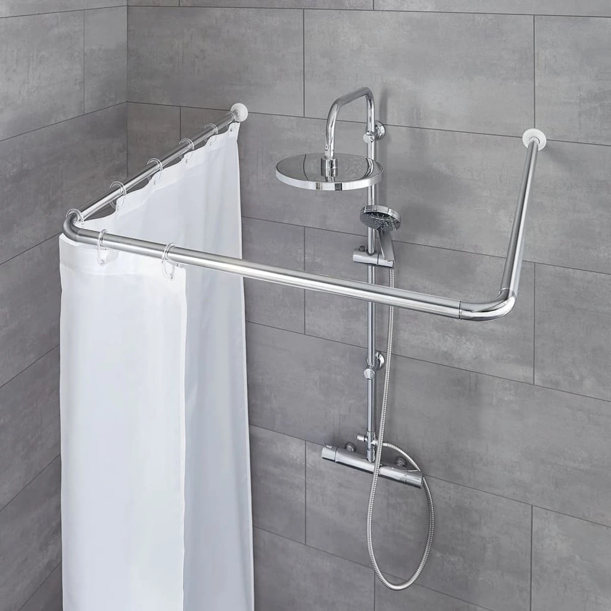 Deze chroomkleurige, 180×200 cm grote, aluminium, telescopische douchegordijnstang van Kleine Wolke heeft 3 maten en een fraai design. Hij is hygiënisch, onderhoudsvriendelijk en universeel toepasbaar.