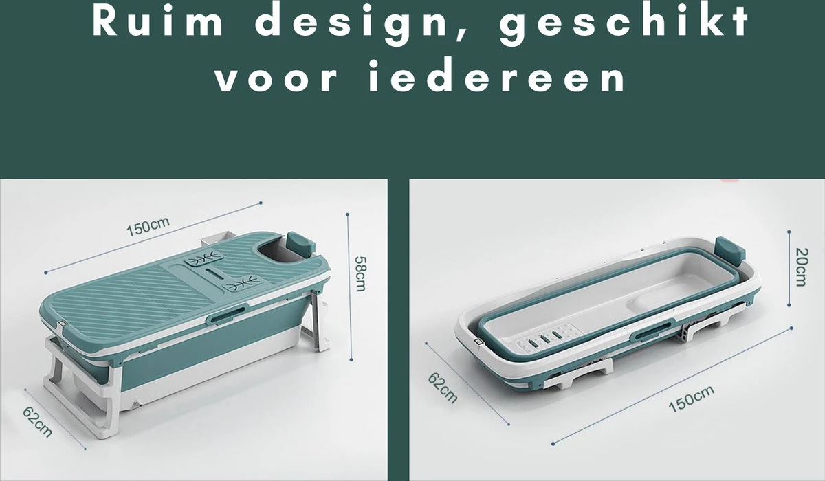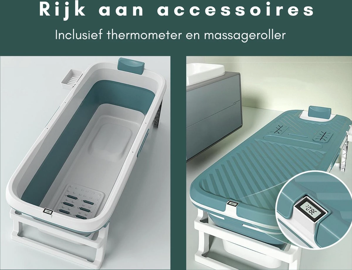 Livista® – Opvouwbaar Bad – Blauw – Zitbad – Inklapbaar – Bath Bucket – 150 CM LANG – XL – Incl. Thermometer & Onderwater LED Lichten