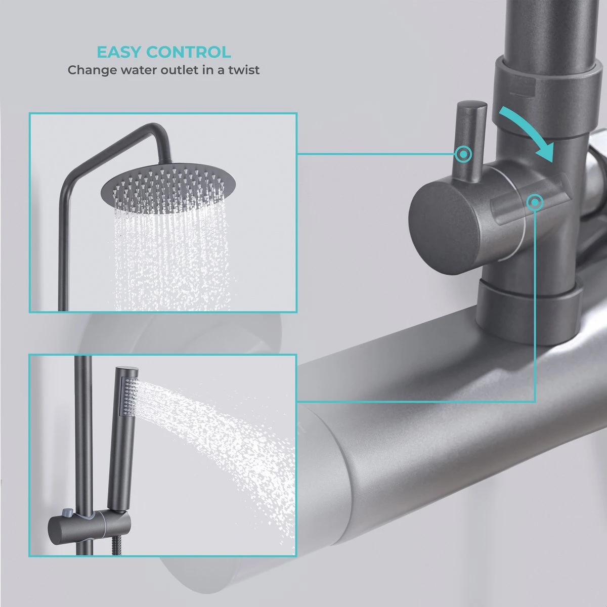 Ontdek regendouche Lynn met haar premium gun metal finish, waterbesparende functies én 3 jaar garantie. De meest geschikte douche voor elk type badkamer.