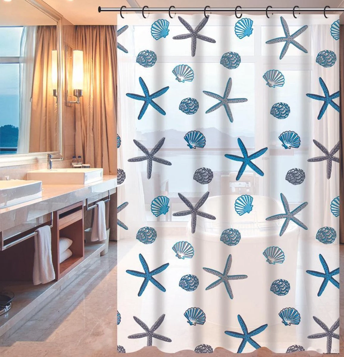 Heerlijke douchen. Na hard werken, sporten of gewoon vroeg in de ochtend is er natuurlijk niks fijner. Het is dan natuurlijk wel vervelend als nadien de hele badkamervloer nat is. Een douchegordijn is dan dé oplossing. U hangt hem eenvoudig op aan de ophanghaken bij uw douche of bad aan een douchestang en trekt het gordijn dicht wanneer u onder de douche staat. Het design van het gordijn is bovendien zeer stijlvol en is daarom een prachtige toevoeging aan elke badkamer.