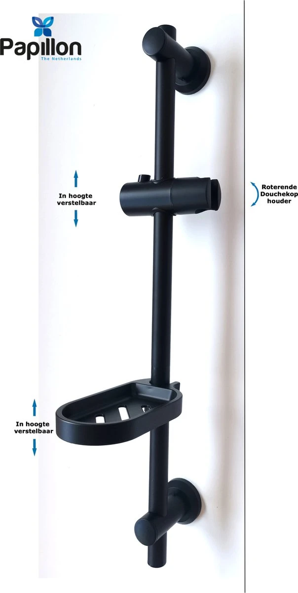 Merkloos Glijstang – Douche Glijstang – Met Zeepschaal En Glijstuk – Papillon Zwart