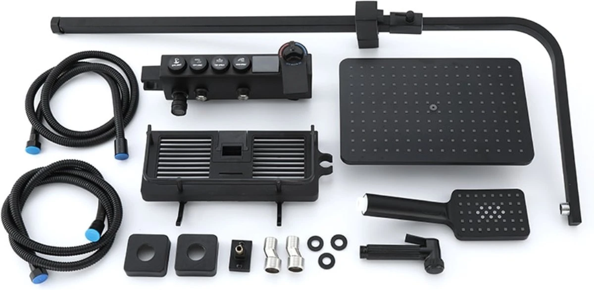De materialen waaruit de douche is gemaakt, zijn van de hoogste kwaliteit. Het messing, roestvrij staal en ABS-kunststof zijn duurzaam en zorgen ervoor dat de douche jarenlang meegaat. De zwarte kleur van de douche geeft het geheel een stijlvolle uitstraling die past bij elke badkamerinrichting.