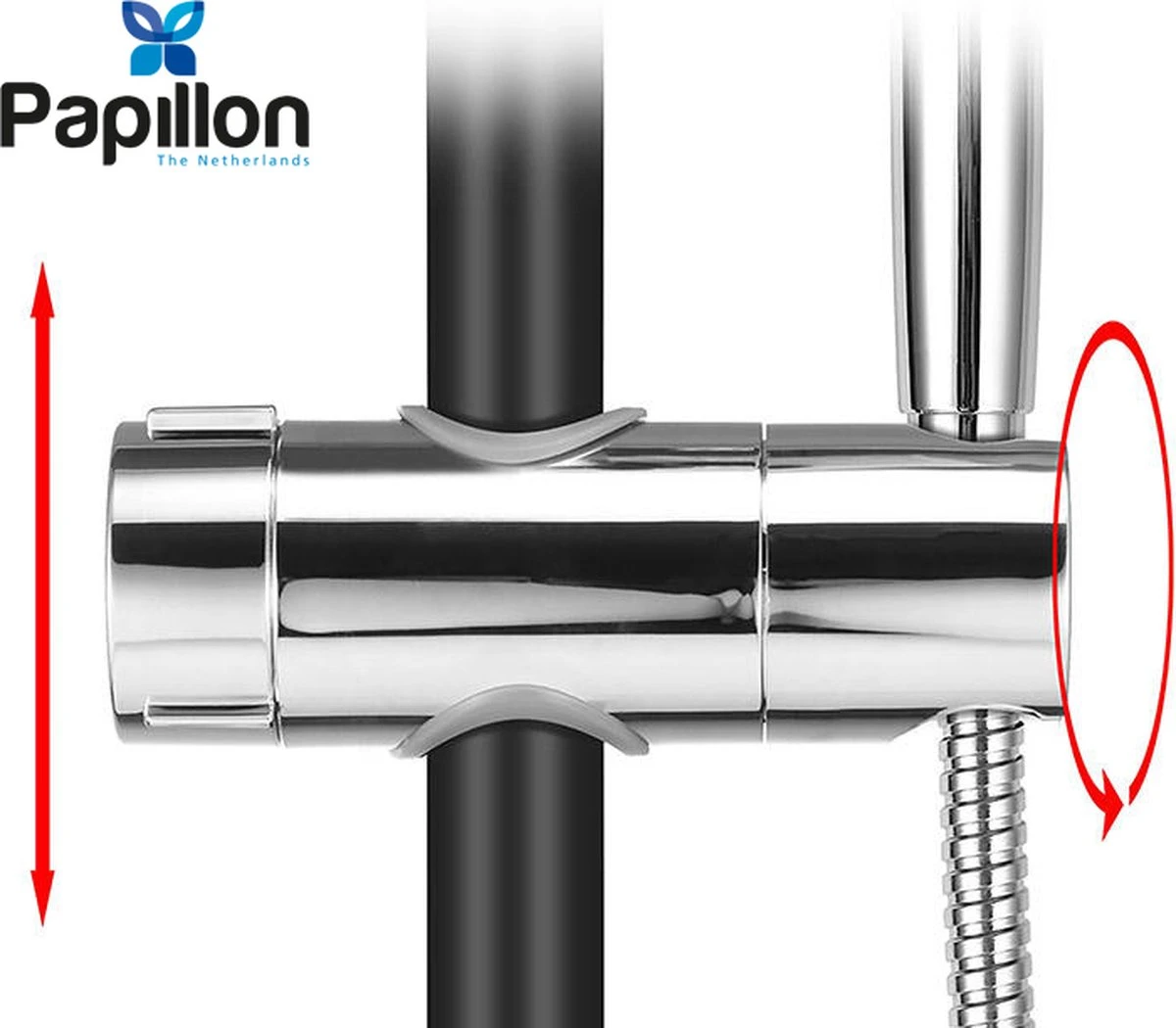 De opening voor de douchekop is draaibaar en heeft een diameter van 20 mm.. Dit is een universele afmeting, waarin de meeste douchekoppen passen.