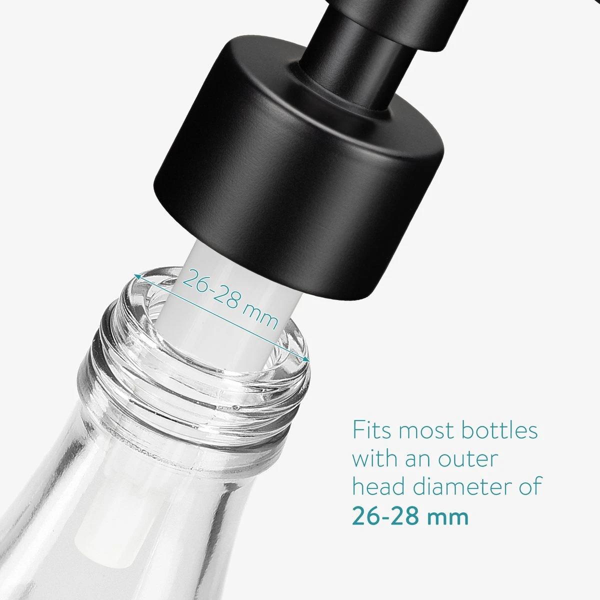- Alleen voor gebruik op flessen met een kop met afmeting tussen de 26-28 mm.