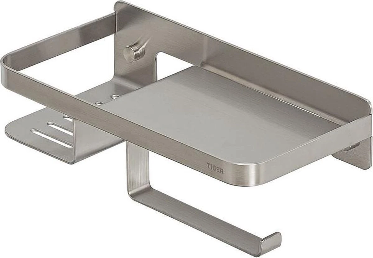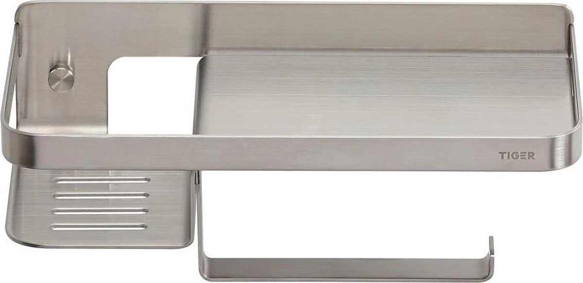Tiger Caddy – Toiletrolhouder Met Planchet 24 Cm – RVS Geborsteld