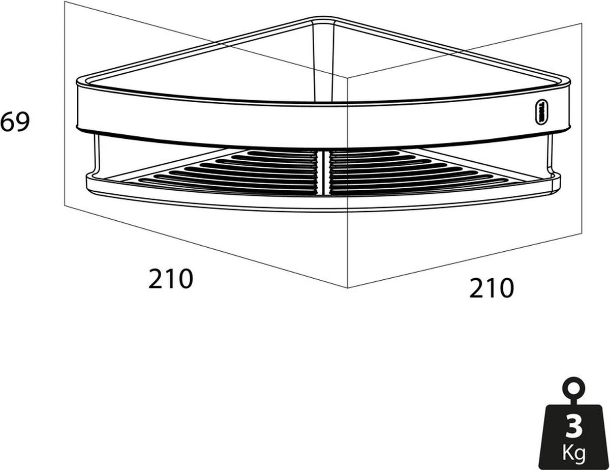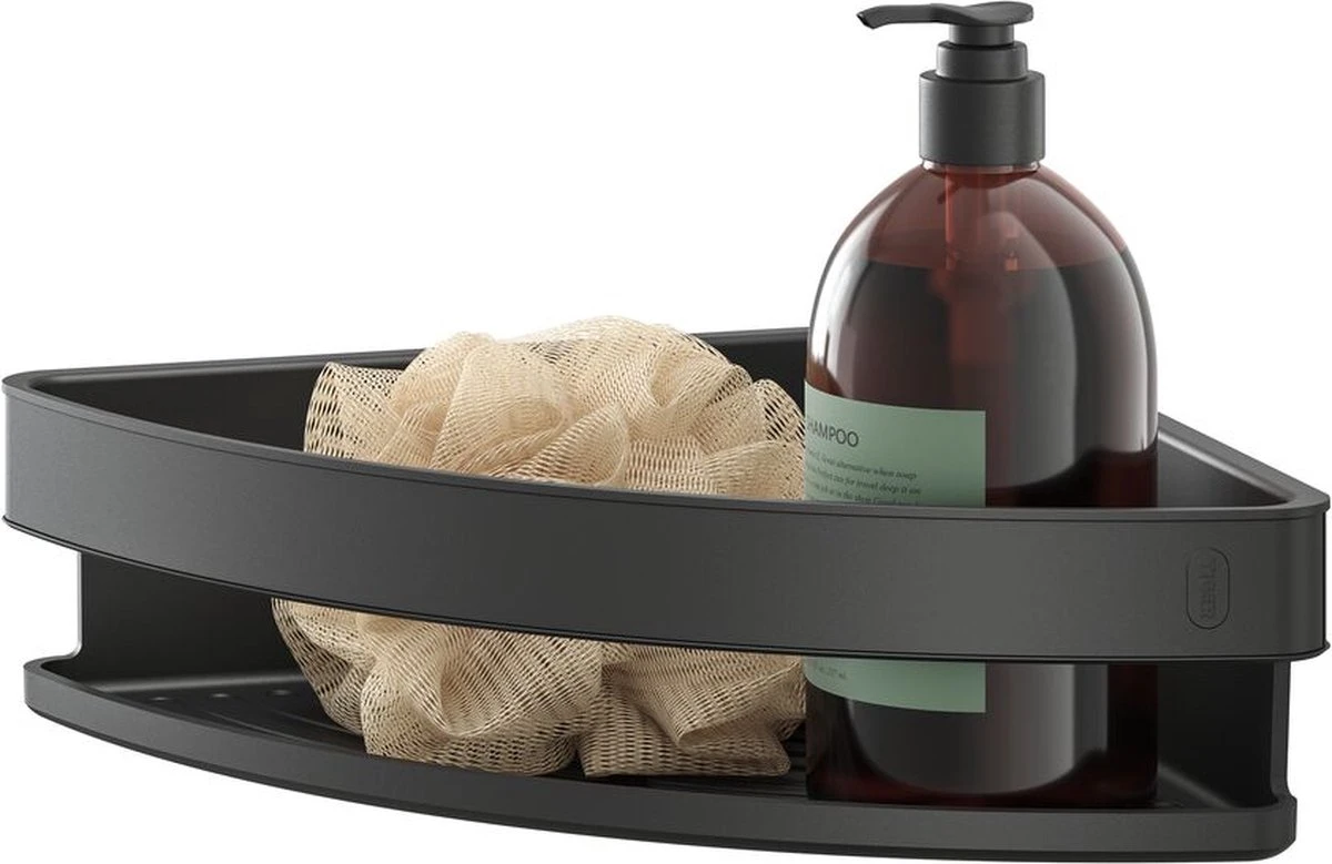 • Gebruiksgemak: dankzij de hoge rand en vlakke bodem blijven de doucheproducten stabiel in de mand staan