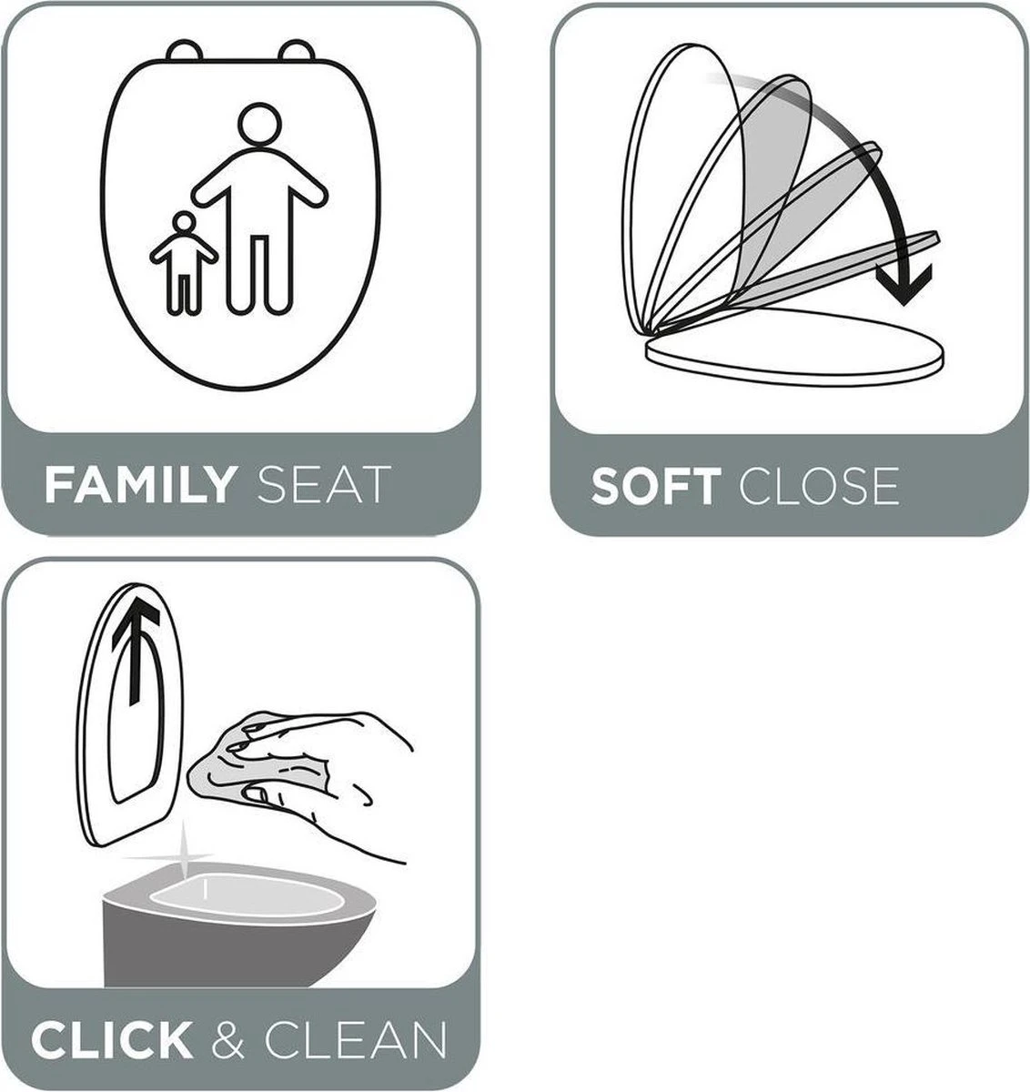 • Kinderzitje is er makkelijk af te klikken waardoor normale toiletbril overblijft