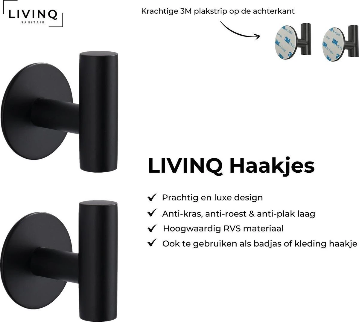 Toiletset Zwart 4-delig – Toiletaccessoireset – Toiletborstelhouder – Toiletrolhouder – Reserverolhouder – Handdoekhaakjes – RVS – Toilet Accessoires Set – Badkamer