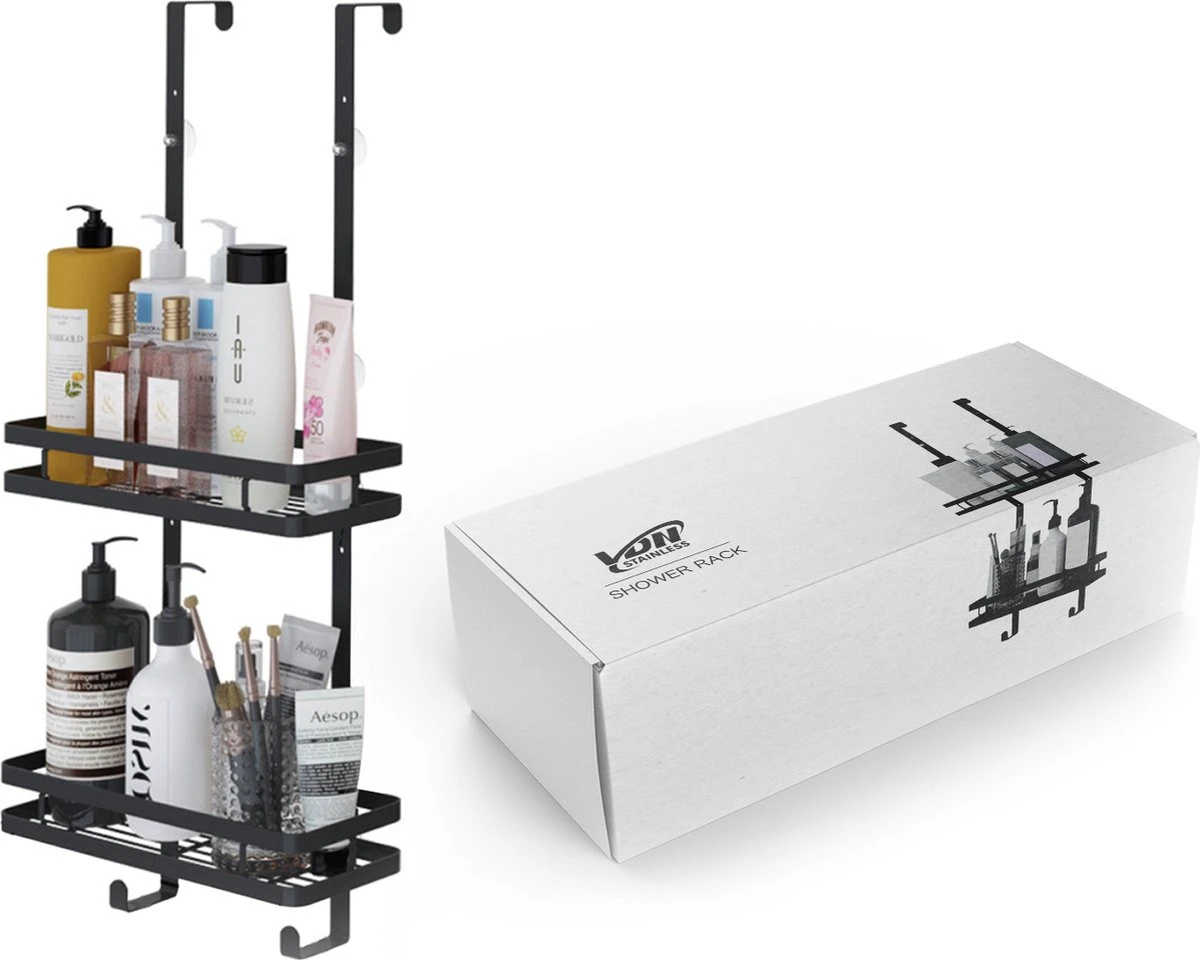 Wil je geen lelijke boorgaten in de muur of ben je niet zo handig? Dan is deze moderne doucherek de beste oplossing. De douchrek is namelijk speciaal ontworpen om aan de douchewand te hangen. De doucherek is geschikt voor iedere douchewand tussen de 0 en 4.5 cm. De doucherek heeft zuignappen aan de achterkant van het rekje voor extra stevigheid. De doucherek is uitgevoerd in roestvrij staal en is zwart van kleur. Maak je badkamer compleet met de doucherek van VDN Stainless.