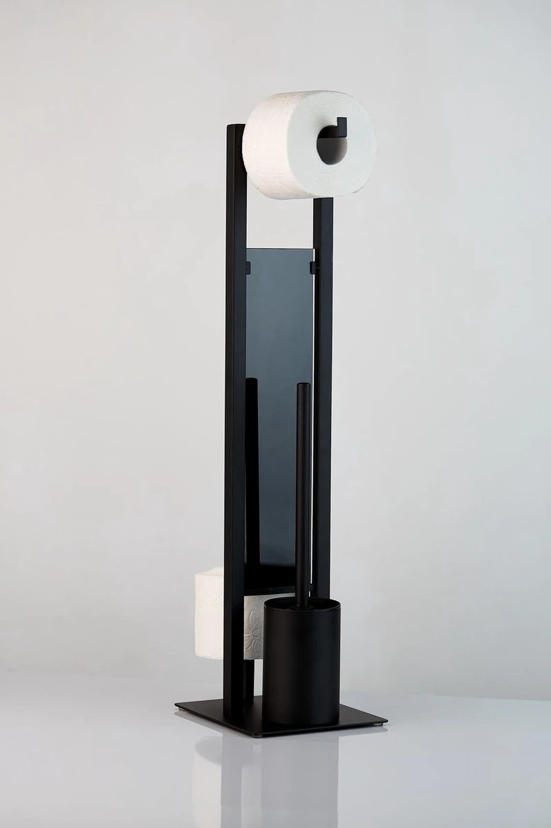 WENKO Toiletbutler Rivalta Zwart – Toiletborstel Met Houder, Toiletrolhouder En Reserverolhouder